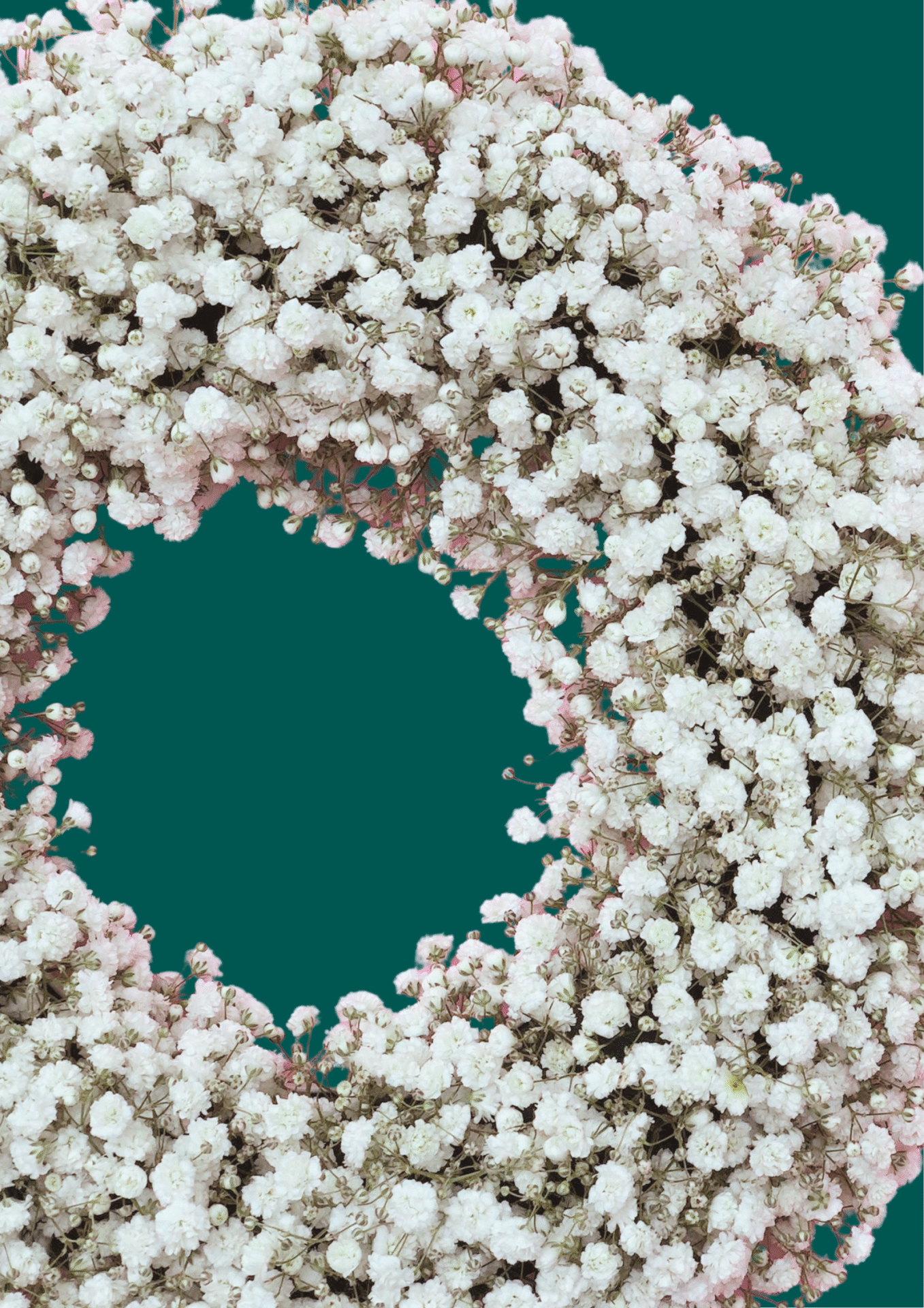 De wolkjes zijn exact zoals ze eruitzien op de foto’s, voor de bloemstukken vragen we jullie op onze goede smaak te vertrouwen. De kransjes en -stukken op de foto’s hieronder zijn een indicatie qua grootte en stijl, kleuren kunnen afwijken volgens seizoensaanbod. Maar we maken er iets moois van, beloofd.